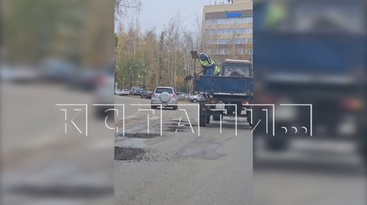 Арзамасские дорожники вместо укладки асфальта разбрасывают его на дороги из кузова едущей машины