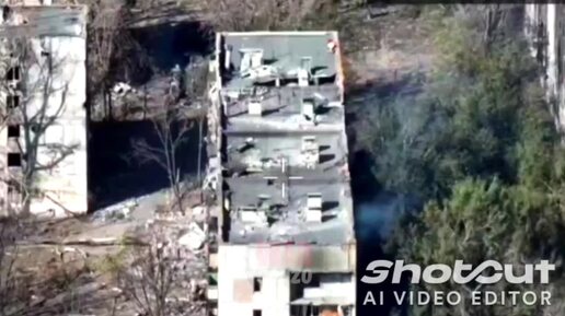 Экшн кадры. Сброс взрывчатки нашим бойцом через крышу дома в Торецке на ВСУшников