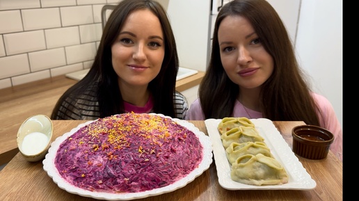 МУКБАНГ САЛАТ СЕЛЕДКА ПОД ШУБОЙ МАНТЫ ДОМАШНИЕ