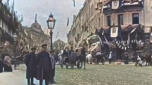 Царская Россия, Тверская улица, кадры в цвете.