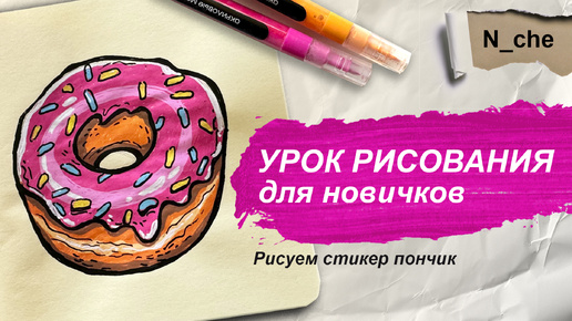 Урок по рисованию для новичков. Рисуем стикер-пончик акриловыми маркерами