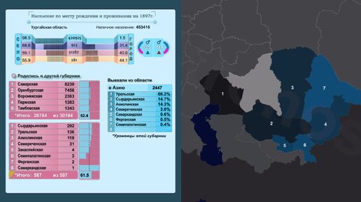 Тургайская область на карте по переписи 1897г.
