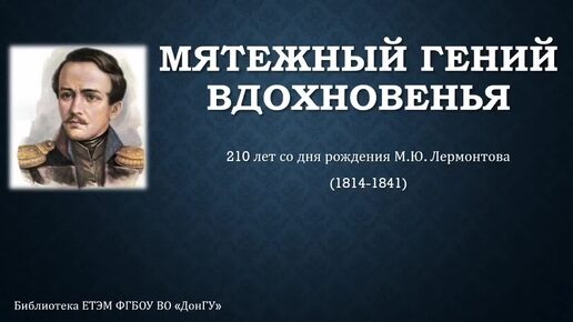 Библиотека ЕТЭМ представляет видеопрезентацию к 210-летию со дня рождения М.Ю. Лермонтова