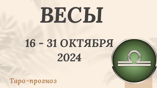 ВЕСЫ ♎️ 16-31 ОКТЯБРЯ 2024 ТАРО ПРОГНОЗ на неделю. Настроение Финансы Личная жизнь Работа