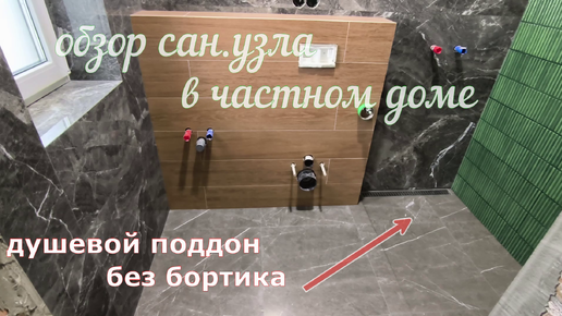 Обзор ванной комнаты с душевым поддоном без бортика в частном доме