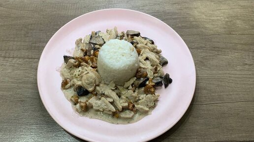 Индейка с грибами в сметанном соусе на сковороде. Приготовила на ужин для своей семьи