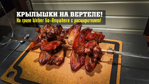 Крылышки в соевом соусе на вертеле! На угольном гриле Weber Go-Anywhere с расширителем.