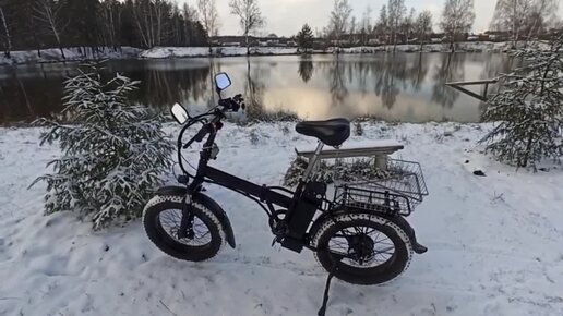 По первому снегу на электровелосипеде.