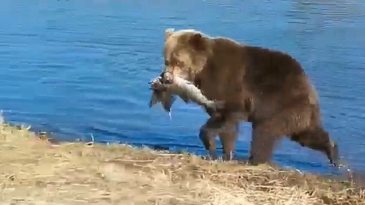 Медведь напал на рыбалке. Отобрал рыбу. Повезло.