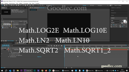 Выражения. Свойства Math.LOG2E Math.LOG10E Math.LN2 Math.LN10 Math.SQRT2 Math.SQRT1_2 After Effects