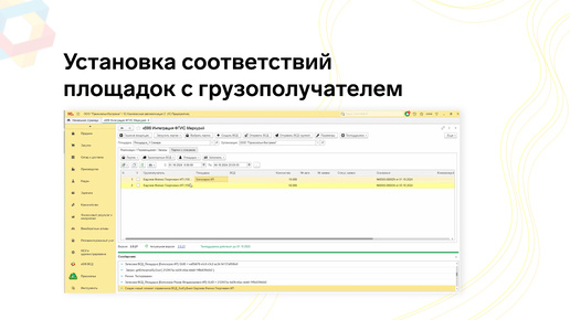 Установка соответствий площадок с грузополучателем