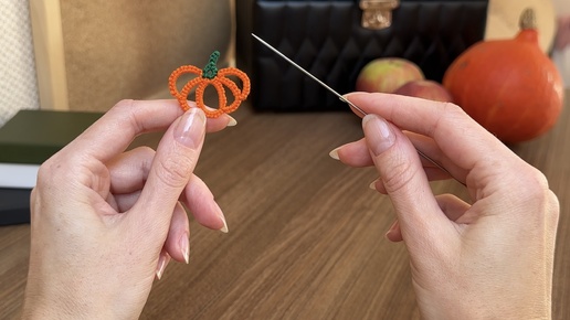 Фриволите иглой. Показываю как сплести тыкву иглой. Можно использовать просто для осеннего декора или на Хэллоуин