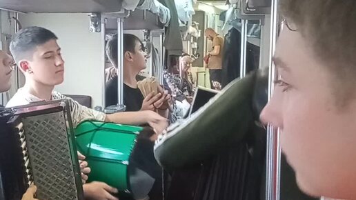 Едеу в вагоне с талантливыми ребятами из Адыгеи из Тахтамукая. Ансамбль "Горцы" . Фрагмент репетиции прямо в вагоне. В составе 7 человек.