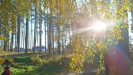 Милая картина: средь осенних грез Солнышко искрится в золоте берёз...