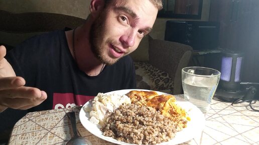 Обжор Mukbang / Салат с Ананасами / Гречка / Запеканка с курицей