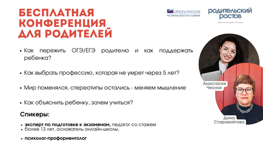 Конференция для родителей. Подготовка к экзаменам и будущее школьников