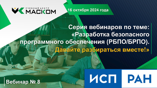 МАСКОМ УЦ - Вебинар 8 серии вебинаров по теме: «Разработка безопасного программного обеспечения (РБПО/БРПО). Давайте разбираться вместе!»
