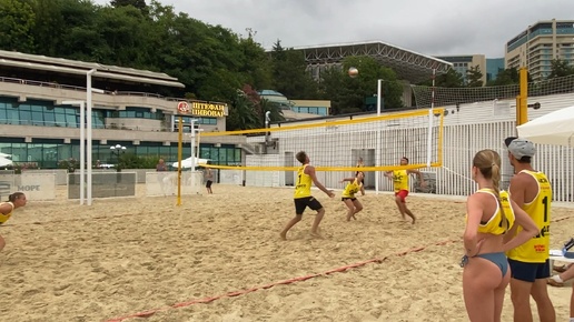 Красивый волейбол на пляже в Сочи.