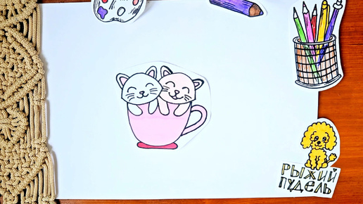 Как нарисовать КОТЯТ в чашечке 🐱🐱 / Простой урок рисования фломасткрами для детей и взрослых