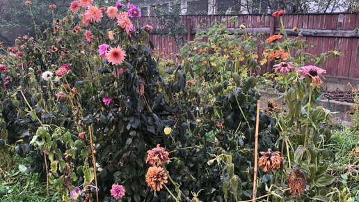 Георгины и теплица после первого заморозка