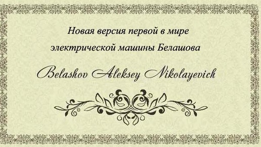 Новая версия первой в мире электрической машины Белашова