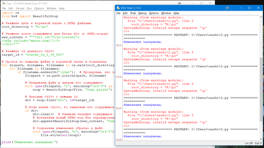 Массовая замена в html содержимого DIV блока по ID (Python)