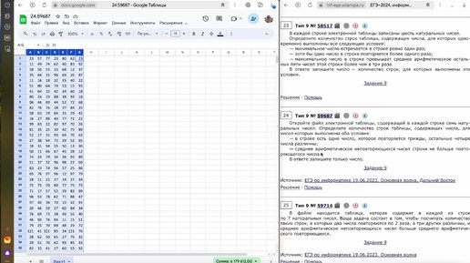 Информатика ЕГЭ. Работа с таблицами. № 9.24.59687