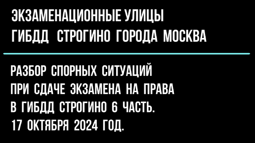 Разбор спорных ситуаций при сдаче экзамена на права в ГИБДД Строгино 6 часть. 17 октября 2024 г.