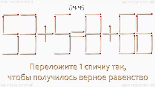 Задача 293. Переложите 1 спичку так, чтобы получилось верное равенство (53+5=8+66)