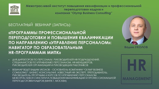 ПРОГРАММЫ ПРОФЕССИОНАЛЬНОЙ ПЕРЕПОДГОТОВКИ И ПОВЫШЕНИЯ КВАЛИФИКАЦИИ ПО НАПРАВЛЕНИЮ "УПРАВЛЕНИЕ ПЕРСОНАЛОМ": НАВИГАТОР ПО HR-ПРОГРАММАМ МИПК
