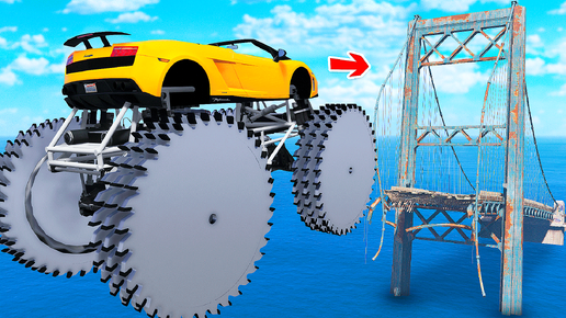 СМОЖЕТ ЛИ ЛАМБОРГИНИ на ПИЛАХ ПЕРЕЛЕТЕТЬ СЛОМАННЫЙ МОСТ в ГТА 5 МОДЫ - ЭКСПЕРИМЕНТЫ в GTA 5 MODS