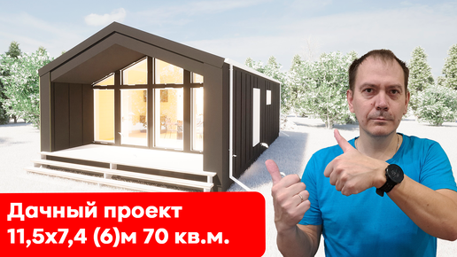 Каркасный дачный дом в стиле Барнхауз 11,5 на 7,4 (6 метров) площадью с террасой 70 кв.м. (кр)