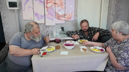 Кушает вкусно эта семья на обед картошечку с салатиком и рыбкой поднимается аппетит ПОДВАЛ ИЛЬИЧА