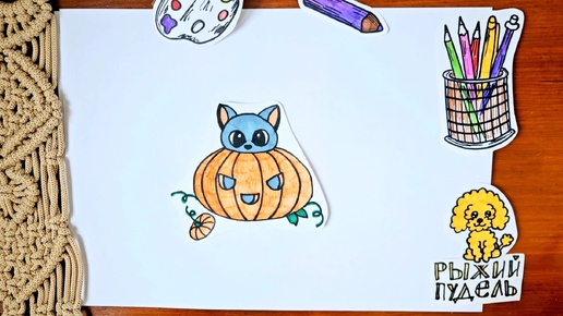 Рисунок на хеллоуин 🎃/ Милый котик в тыкве / поэтапный рисунок