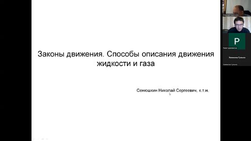 Лекция 5. Законы движения.Способы описания движения жидкостии газа. Сенюшкин Н.С.