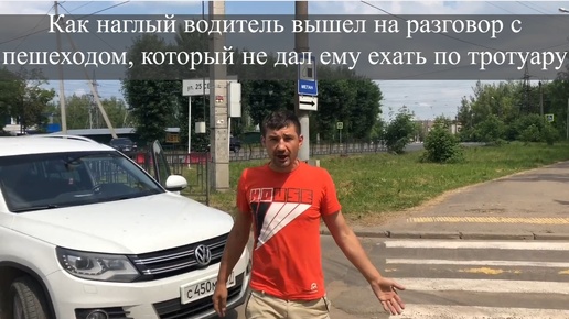 Как наглый водитель вышел на разговор с пешеходом, который не дал ему ехать по тротуару