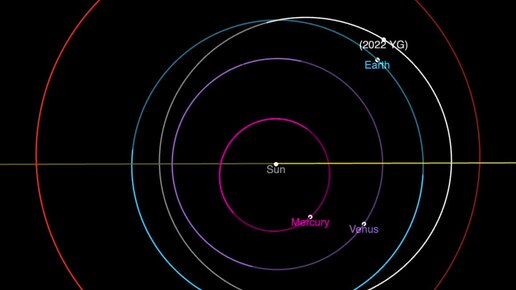 Движение квази-спутника Земли - астероида 2022 YG - по гелиоцентрической орбите.
