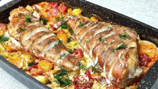 Морской окунь запечённый с овощами в духовке.