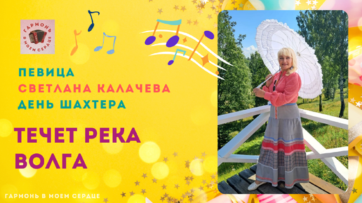Красота русской песни Течет река Волга нежно льется из уст Светланы Калачевой под гармонь Александра Ганичева на день Шахтера, Ярега.