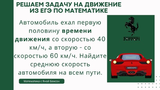 Ищем среднюю скорость автомобиля на всем пути | ЕГЭ по математике профильного уровня