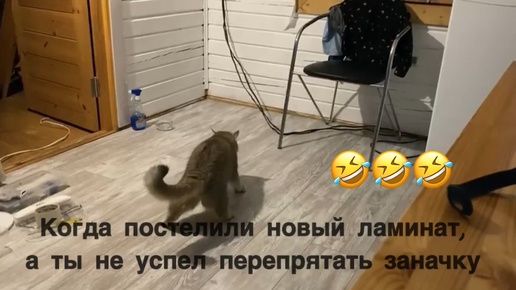 Когда постелили новый ламинат, а кот не успел перепрятать заначку