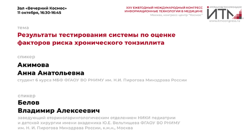 Результаты тестирования системы по оценке факторов риска хронического тонзиллита