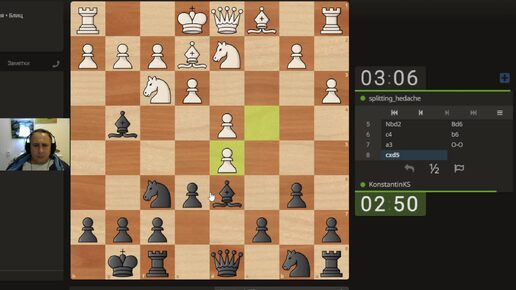 Шахматы, блиц 3+2. Партия №14.