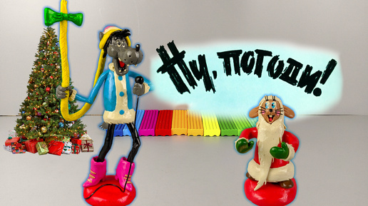 Ну,погоди! Волк и заяц . Новый год лепим из пластилина