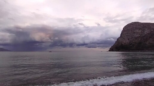 После заката бухта Нового Света спокойная, люди купаются. Октябрь.