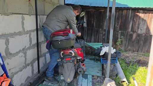 выкатываем скутер ВИЗАРД .готовим к поездке.