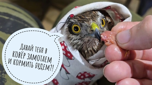 Сова Ёль вернулась домой из Москвы, ястреб-перепелятник начал есть, кошка Морошка хочет распаковку