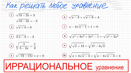 Как решать иррациональные уравнения (с корнями) 10 примеров Как решать уравнение с квадратными корнями ОДЗ иррациональное уравнение