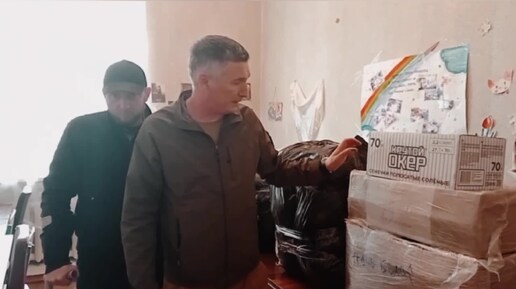 Руководитель единого штаба помощи Донбассу председатель МОО Доброволец Вадим Мироненко передал помощь и реликвии для будущего музея.