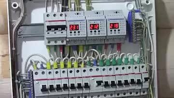 3-фазный щит для дома с реле напряжения. Перекос по напряжению- в конце.